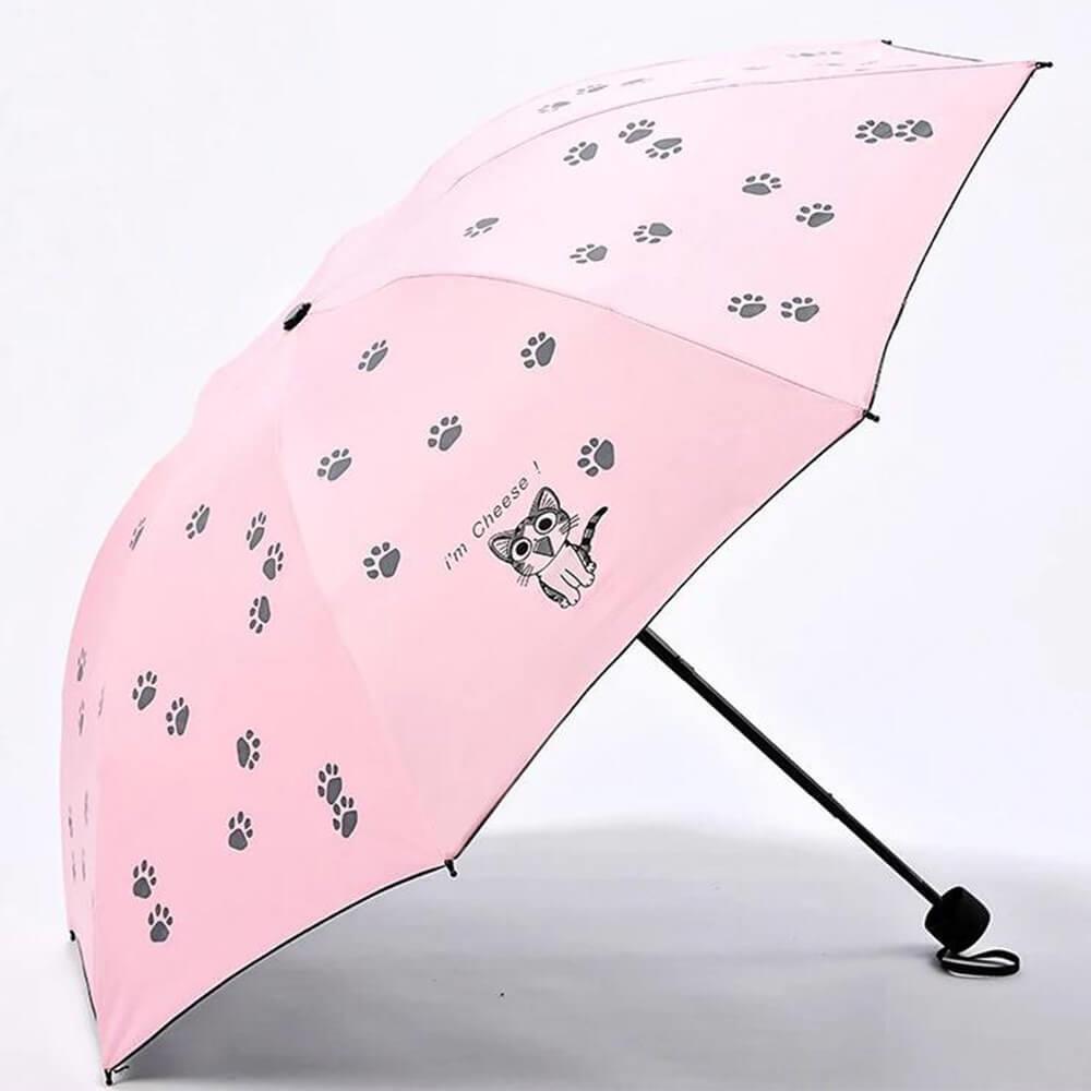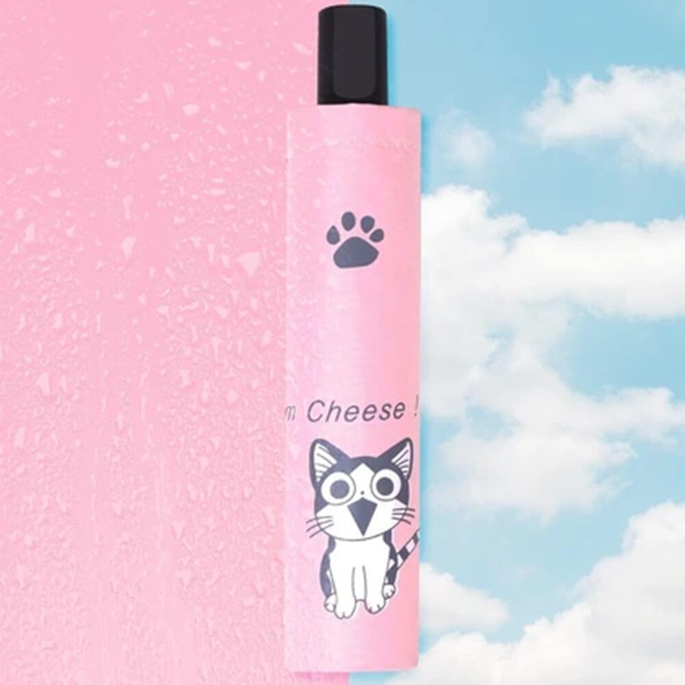 Skládací kočičí deštník - světle růžový