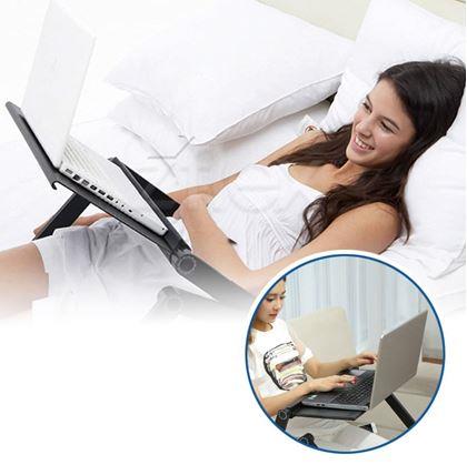 Stolek je vysoce stabilní, dále je pohodlně přenosný a skládací. Nastavení výšky je velice jednoduché. Stiskněte pouze vždy dané aretační tlačítko a nastavte si požadovaný sklon. Pohodlná práce na laptopu. Přítomnost otvorů ve stolku zajištuje perfektní odvětrávání a laptop se tak nebude přehřívat.