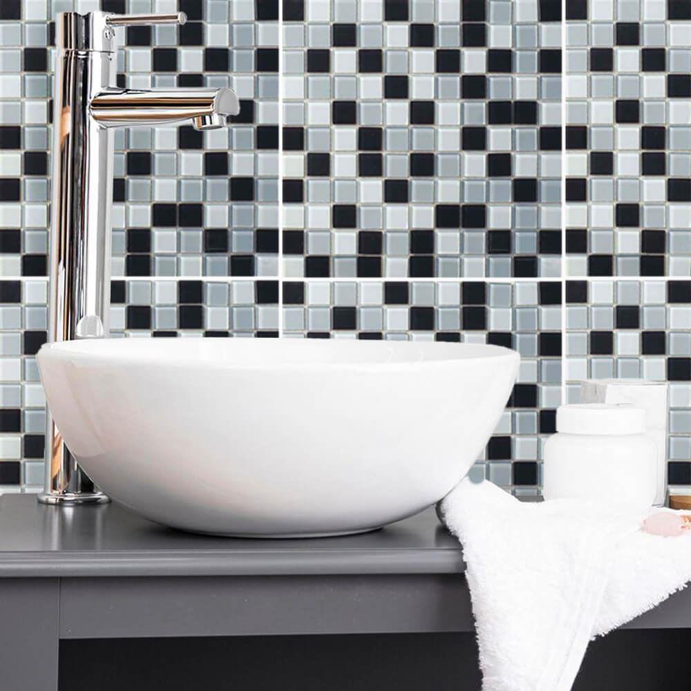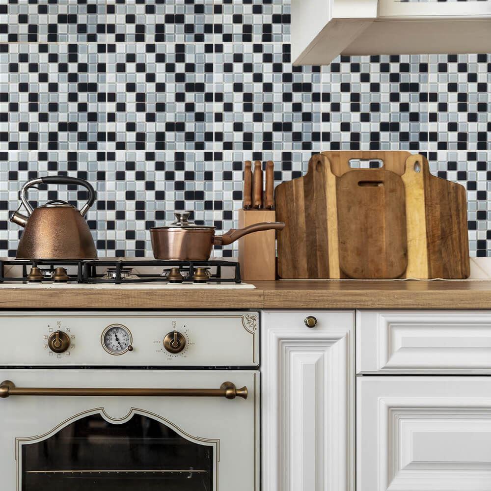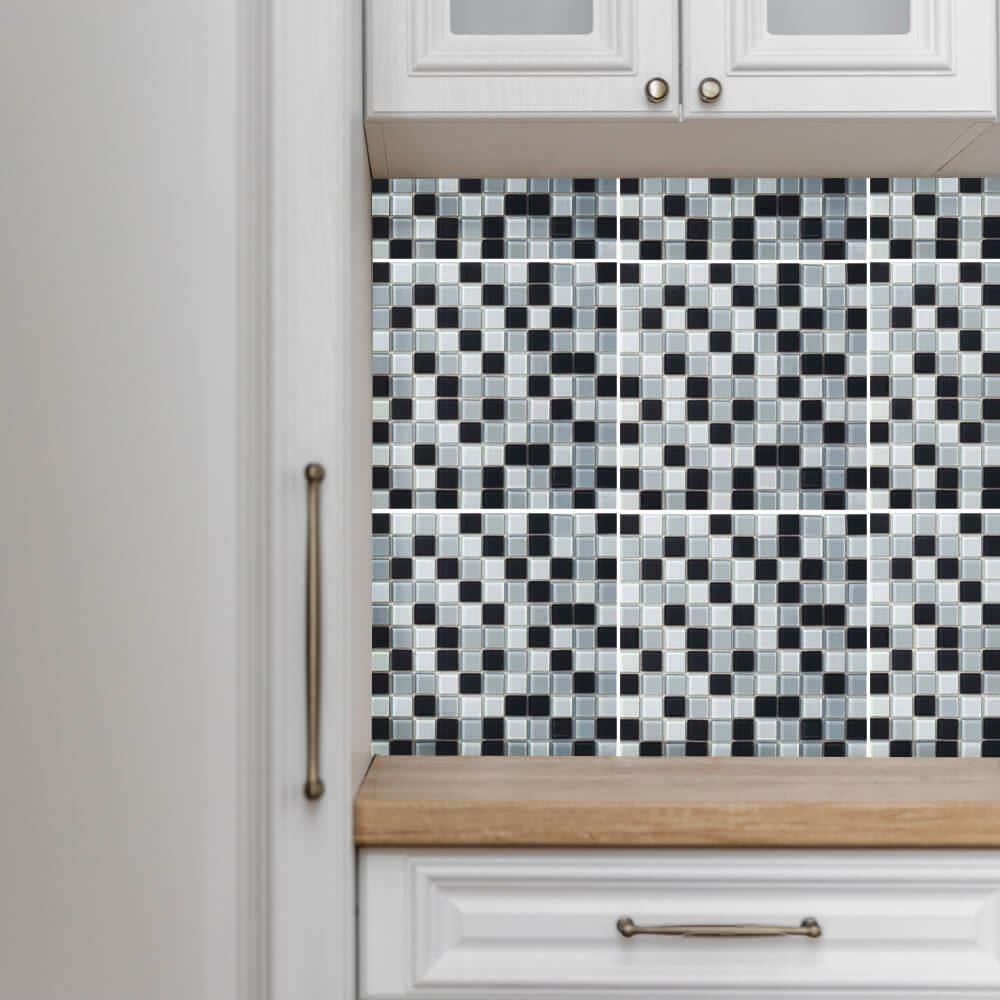 Skleněná mozaika na mřížce 30 x 30 cm - černobílá