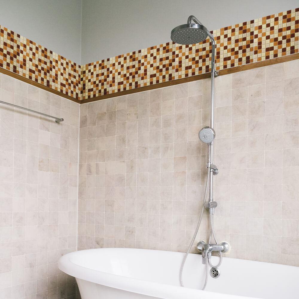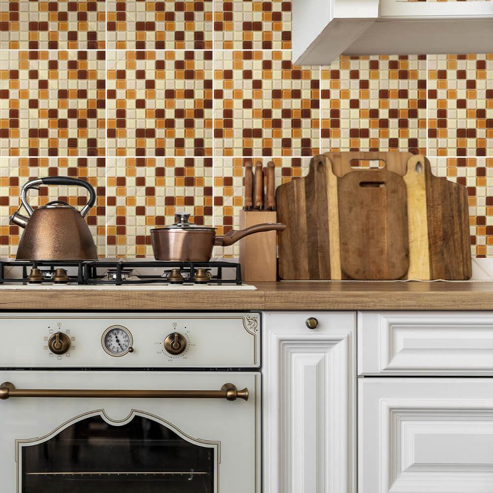 Mozaika ale neplní jen designovou funkci, ale i tu praktickou. Díky hladkému povrchu a svému zpracování je velmi snadná na údržbu.