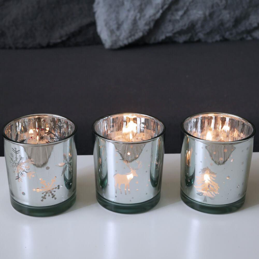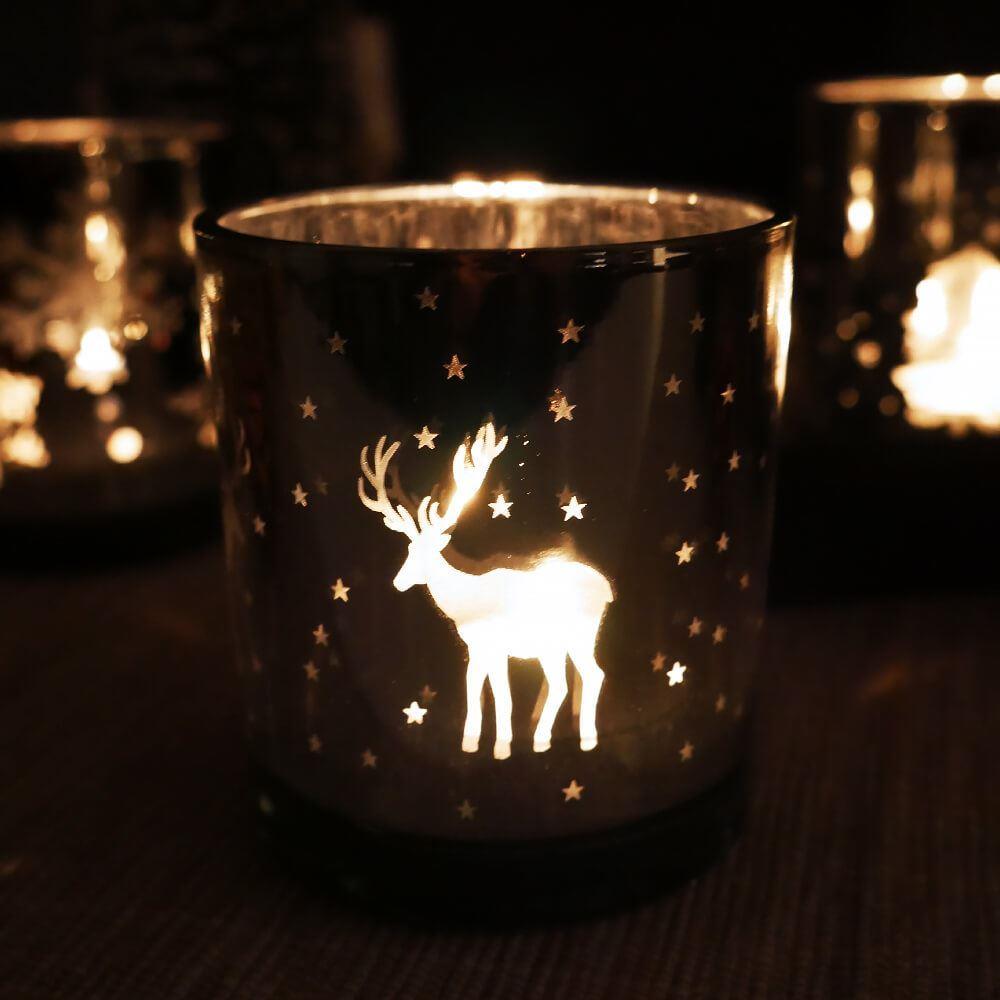 Skleněný vánoční svícen na čajovou svíčku - sobi