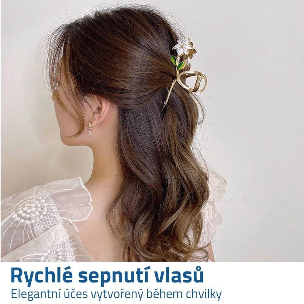 Nechte své vlasy kvést krásou s tímto trendovým doplňkem. Originální spona do vlasů ve tvaru květiny je krásný vlasový doplněk pro všechny milovnice elegance a stylu. Svým jedinečným designem dodá vašemu účesu sofistikovaný nádech, kterým zaručeně nadchnete své okolí. Jeho nošení je pohodlné, skřipec vás nebude tlačit, ani zbytečně tahat či trhat pramínky vlasů. S květinovým skřipcem vytvoříte okouzlující účes během chviličky. Je vhodný pro všechny typy vlasů, stejně tak pro všechny běžné i speciální příležitosti, jako jsou svatby, večírky a jiné oslavy.
