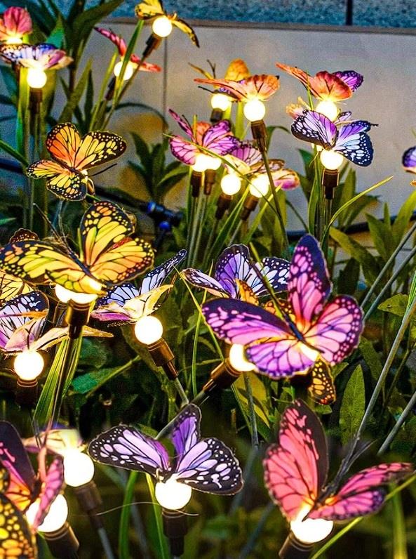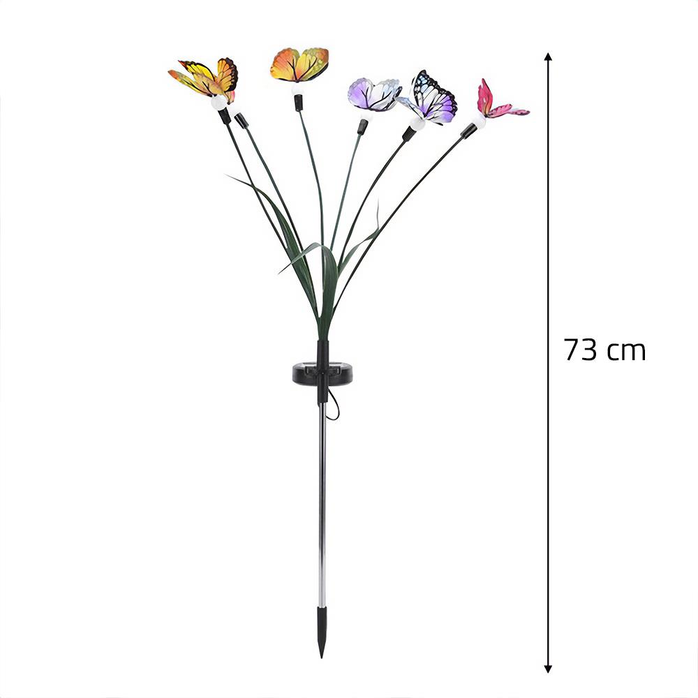Solární zápich s motýlky je okouzlující zahradní dekorace, která dodá vašemu venkovnímu prostoru lehkost, barvy a jemné světlo. Šest světýlek s motýly se přes den nabíjí pomocí sluneční energie a po setmění se automaticky rozsvítí, čímž vytvoří příjemnou, pohádkovou atmosféru.