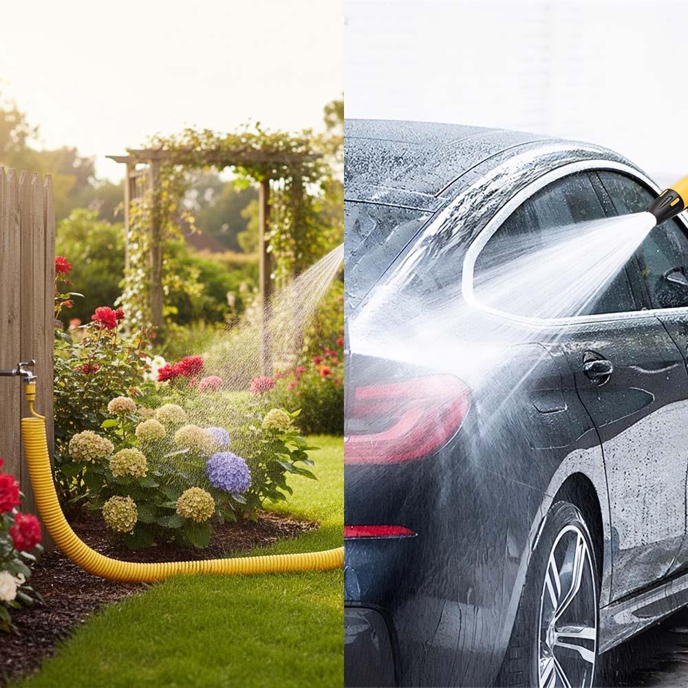 Spirálová zahradní hadice s pistolí je skvělým řešením pro každého, kdo chce mít na zahradě pořádek a zároveň mít vodu vždy po ruce. Hadice je stočená do kompaktní spirály a při použití se jednoduše natáhne až na 10 metrů. Po skončení práce se zase sama stáhne zpět – bez zamotání, uzlů a tahání dlouhé hadice po zemi.