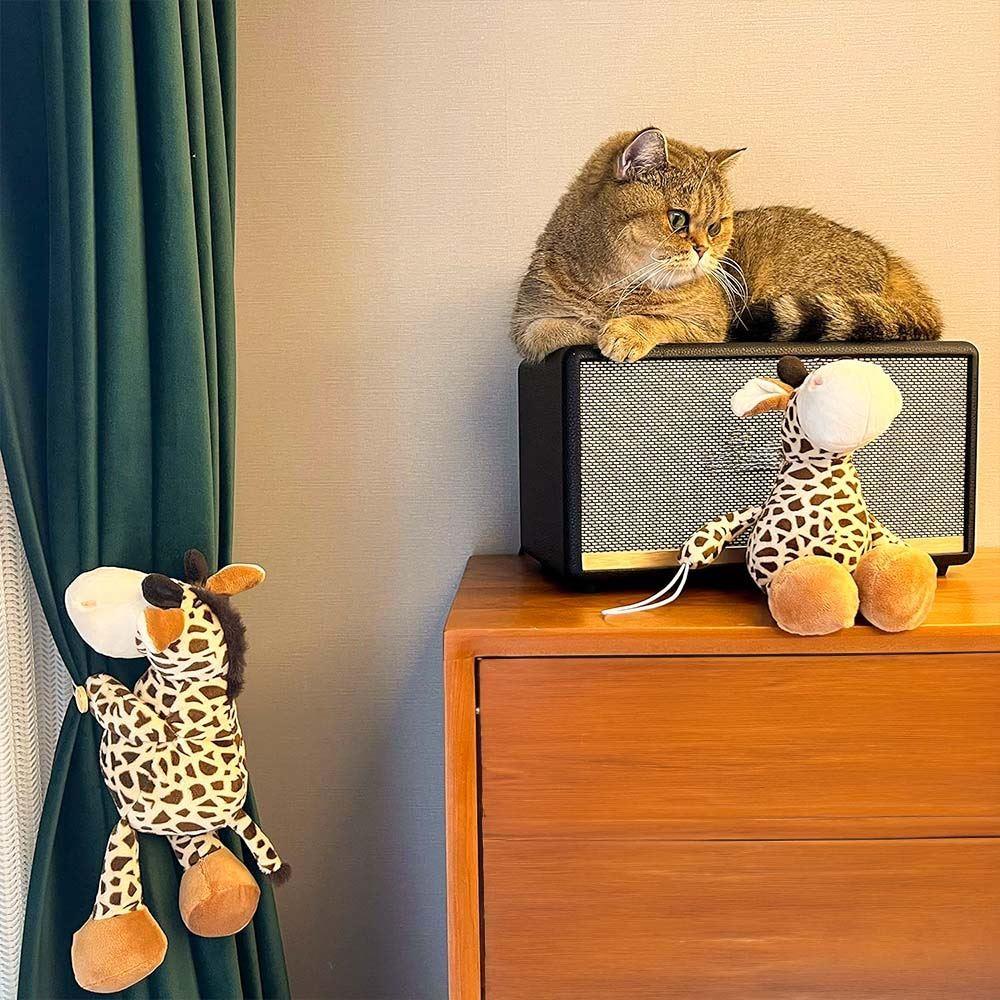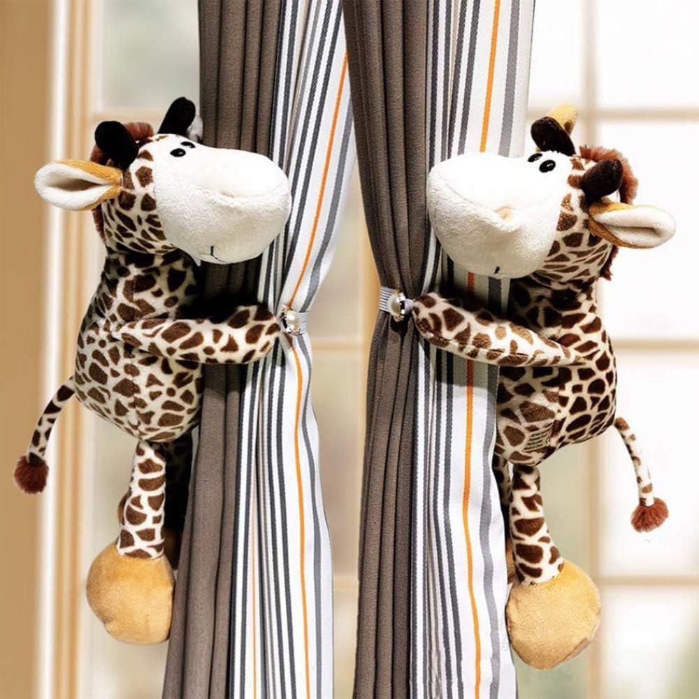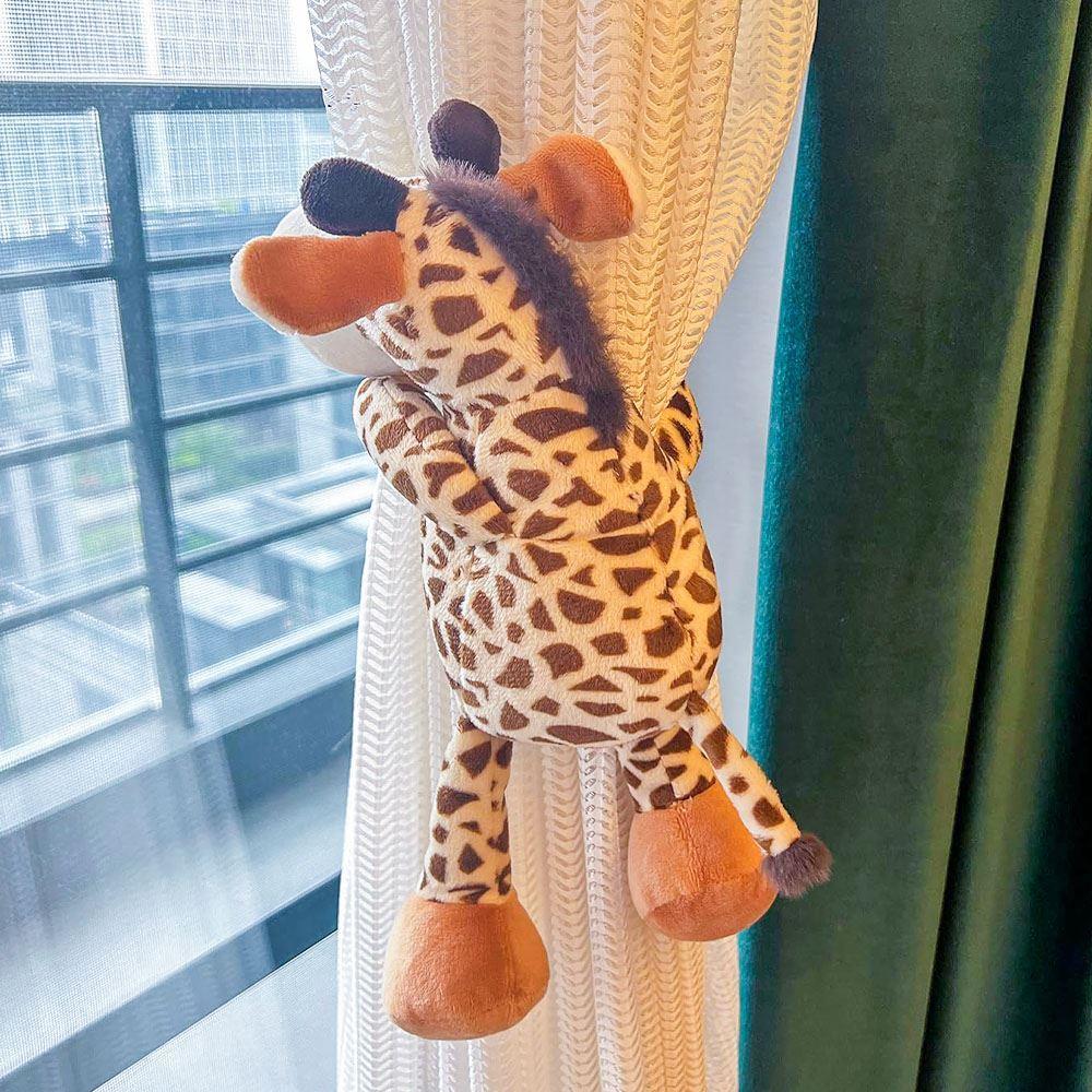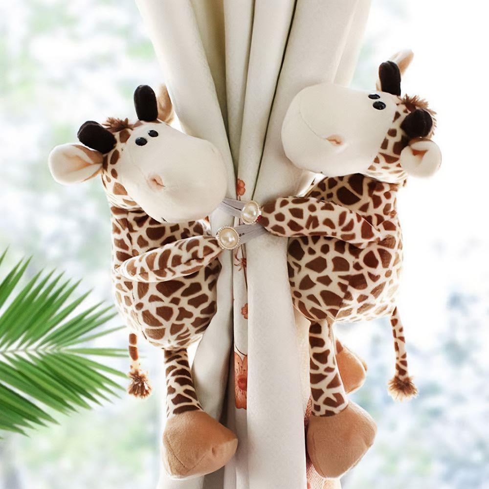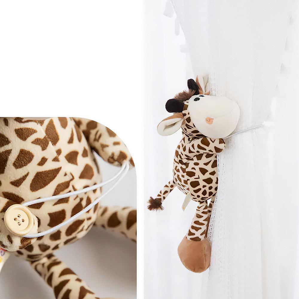 Dětská spona na závěsy v podobě plyšové žirafy přináší nejen praktické, ale i, pro malé děti, estetické řešení pro svázání závěsů na oknech dětských pokojů. Vyrobena z měkkých materiálu, je spona lehká a příjemná na dotek i na pohled.