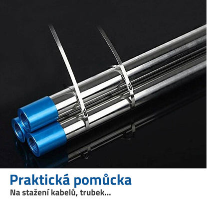 Jsou antikorozní a vyrobeny z odolné a pevné nerezové oceli. Mají zatahovací kuličkový zámek a využijete je jen jednou. Vydrží velmi vysoké i nízké teploty.