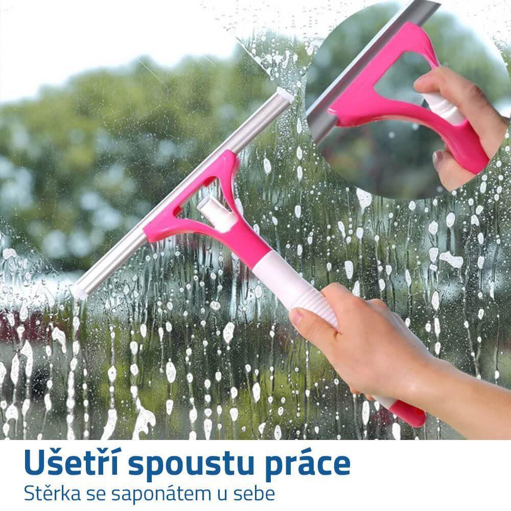 Zářivě čistá a nablýskaná okna! A to celé během chvilky? Představujeme vám speciální stěrku s rozprašovačem, jedná se vlastně o takové 2v1. Perfektní doplněk při mytí oken, ať už doma, v kanceláři, ale také skla u aut. Díky rozprašovači, který je součástí stěrky, si ušetříte spoustu práce, a také času! Z rozprašovače nastříkáte saponát na danou plochu, kterou chcete vyčistit, stěrkou pak okna už jen setřete. Stěrka není vhodná pouze na okna, ale také na zrcadla nebo kachličky.
