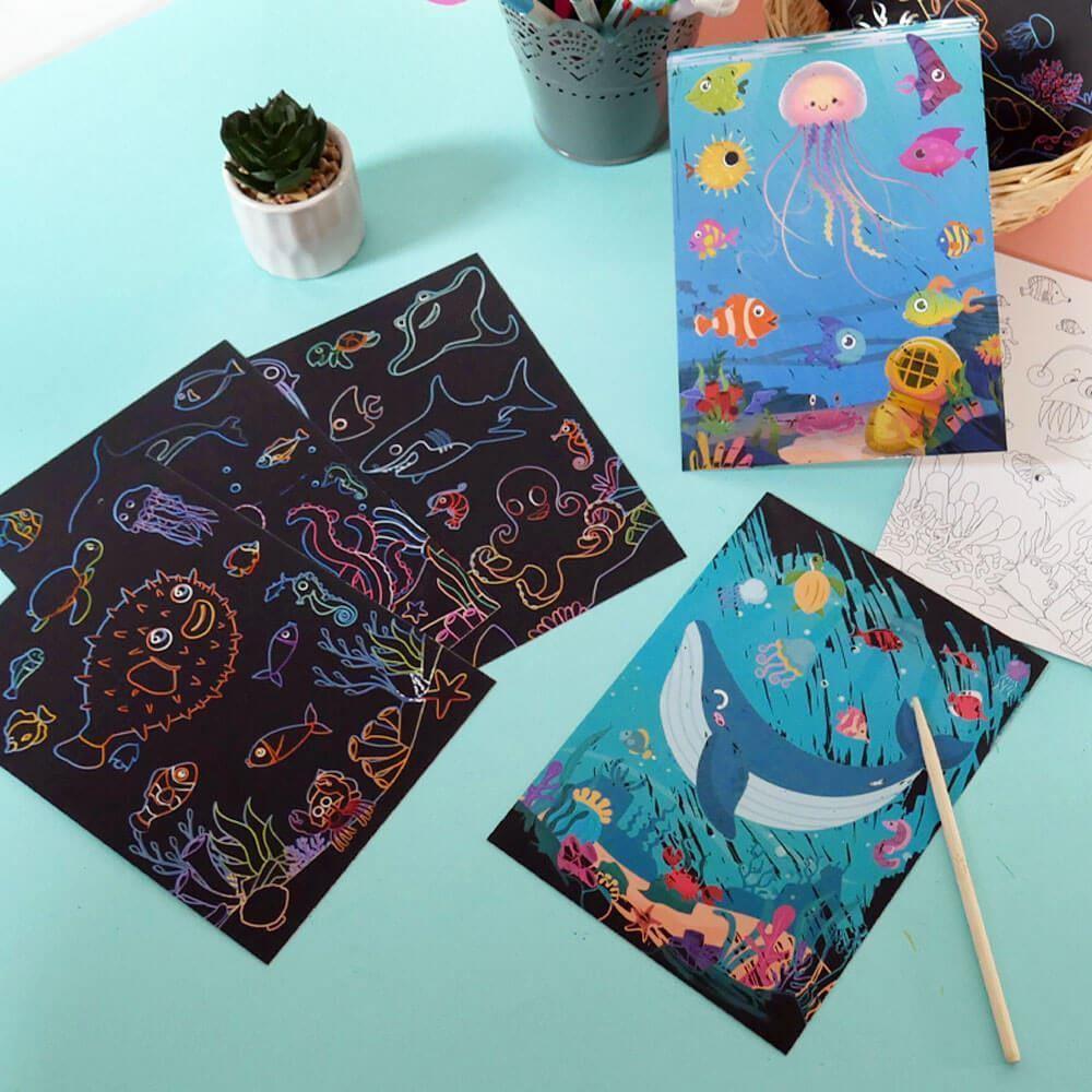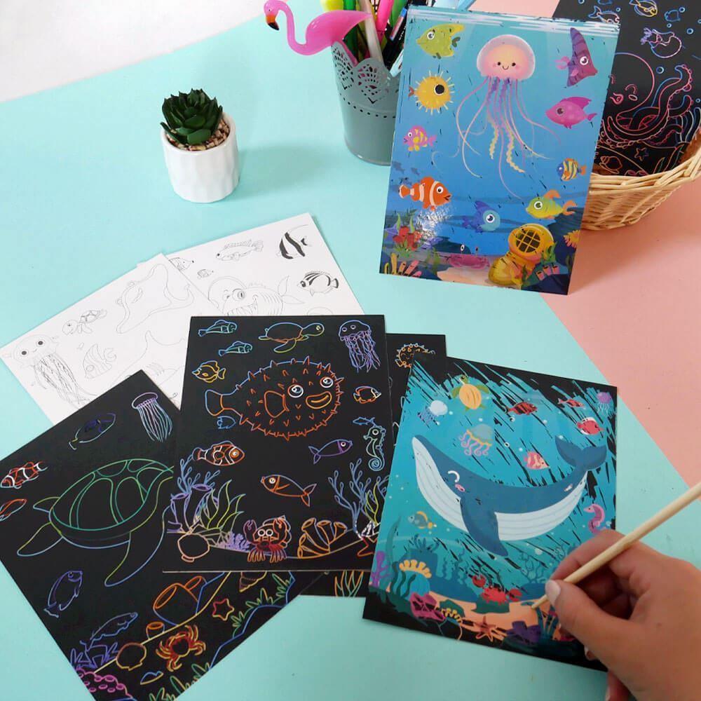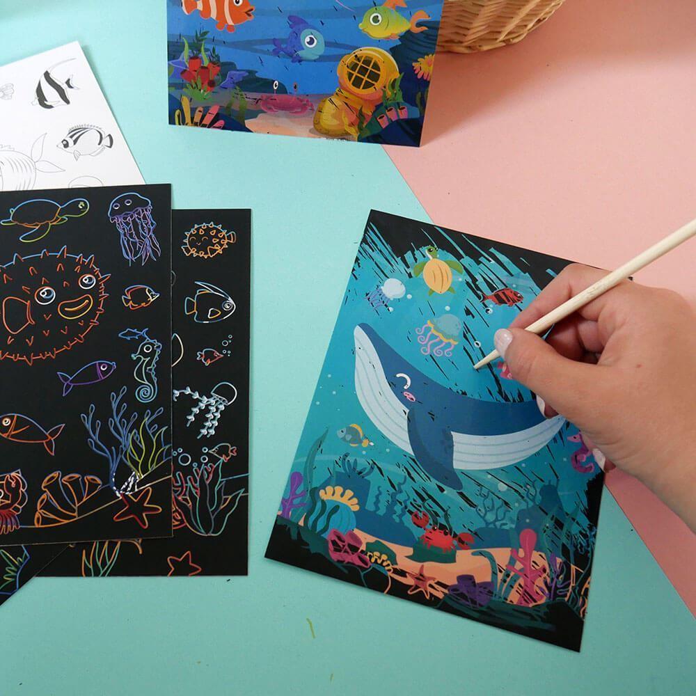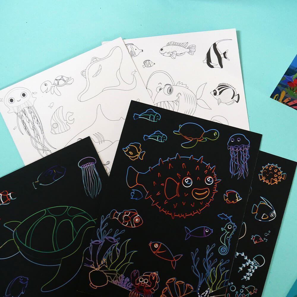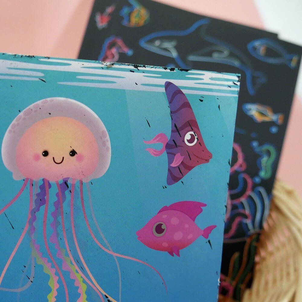 Stírací obrázky pro děti 9 ks - podmořský svět