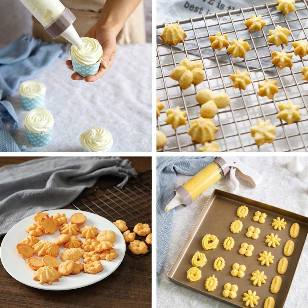 Strojek na cukroví se zdobičkou je parádní vychytávka na pečení sušenek. S ním vám půjde práce pěkně od ruky. V balení obdržíte 13 nástavců s různými motivy. Vytvoříte máslové, kakaové či kokosové sušenky různých a roztomilých tvarů. Strojek naplňte středně tuhým těstem. Doporučujeme těsta, která se neroztékají (s nižším obsahem másla) a která nenabývají (bez kvasnic).