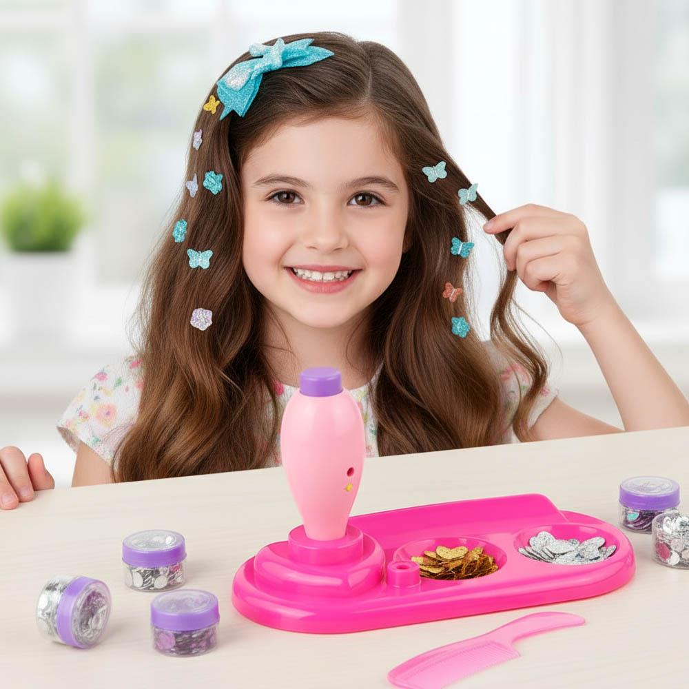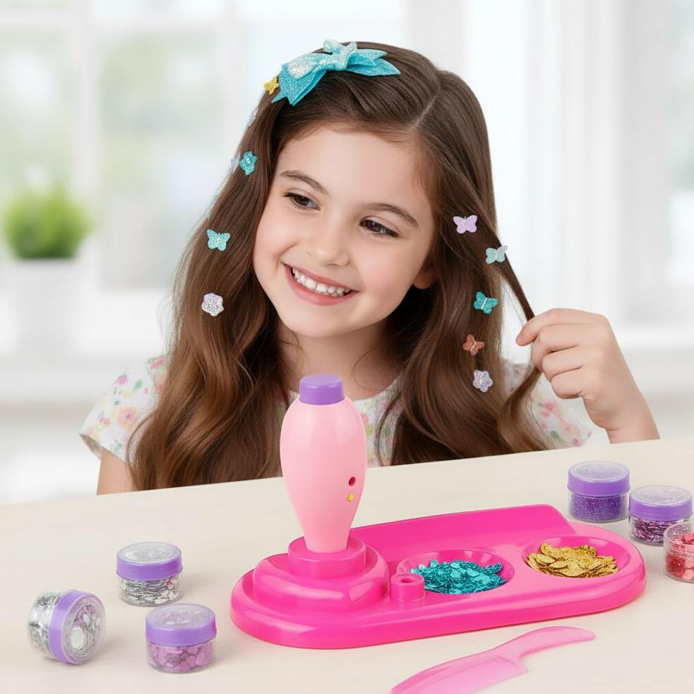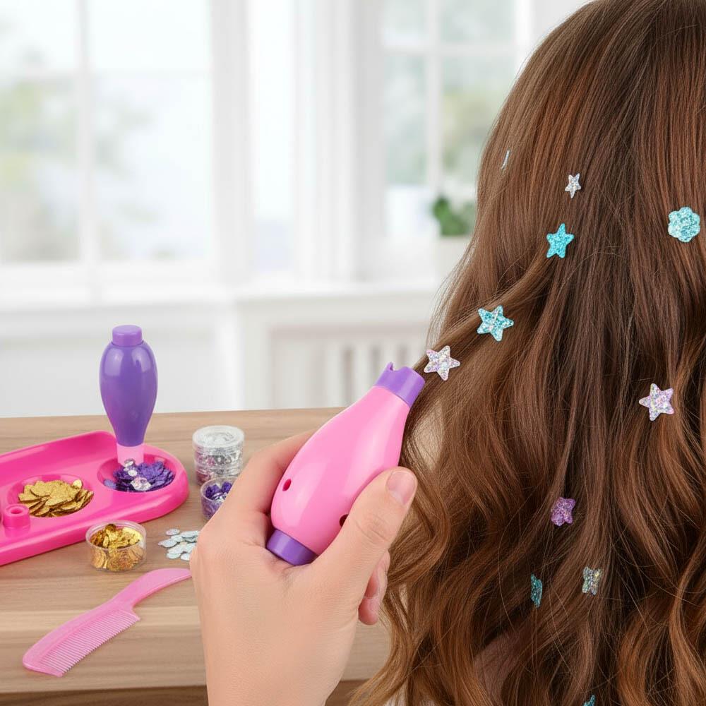 Kdo by nechtěl, aby se jeho vlásky třpytily na slunci ještě víc než ty, které měla Zlatovláska? Každá malá princezna touží po dokonalém účesu, se kterým zazáří! Tento kouzelný strojek jí v tom dokáže pomoci, a navíc si s ním užije spoustu zábavy. V sadě nalezne kromě strojku a třpytek různých tvarů a barev také hřebínek, takže bude mít vše potřebné, aby si hned po rozbalení svého dárku mohla vyčarovat ten nejkrásnější účes.