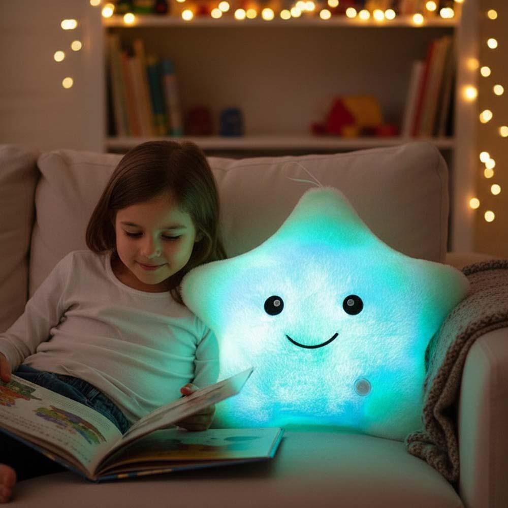 Roztomilý polštář ve tvaru hvězdičky si vaše děti okamžitě oblíbí. Mohou s ním bez problému usínat, je vyrobený z příjemného materiálu. Nejvíce ocení to, že je polštář svítící. Pro zapnutí stačí jen vložit baterie a zmáčknout tlačítko na polštáři.