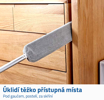 S touto prachovkou sa naozaj dostanem na ťažko dostupné miesta - pod posteľ aj gauč. Vojde sa tam aj s rúčkou a skvele vymetie prach. Navyše ďalší návlek je veľký bonus. Ľahko sa dáva dole, pre jednoduché vyprášenie a ľahko zase naspäť. Určite odporúčam!