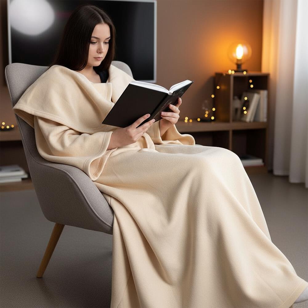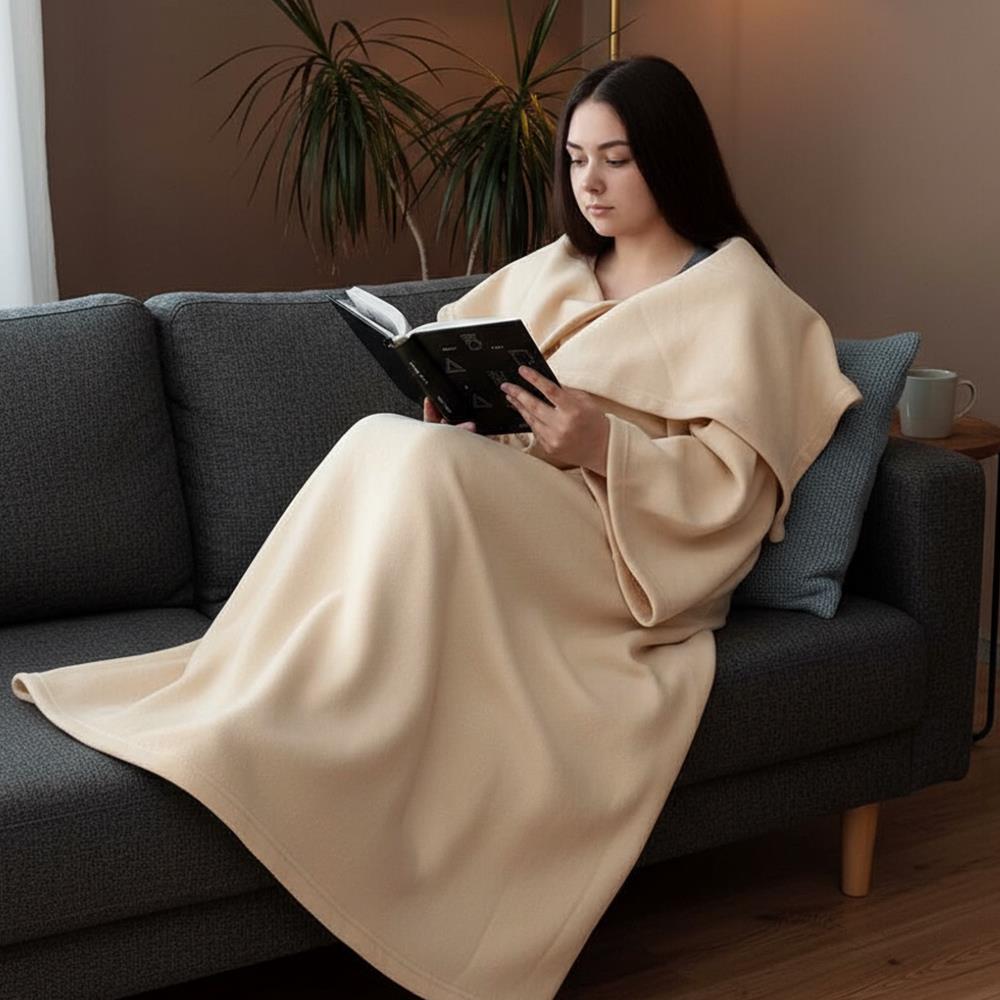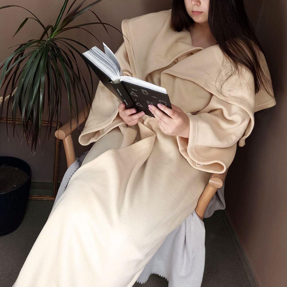 Televizní deka s rukávy - krémová
