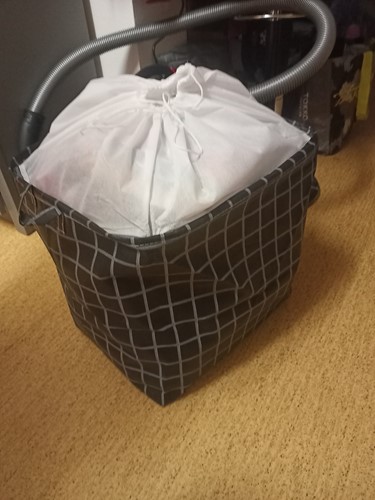 lehký, pevný, velký, dá se stáhnout shora, takže ideální na pokrývky a polštáře.