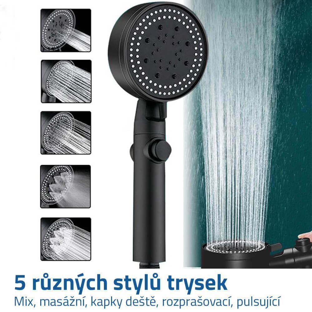 Tuto sprchovou hadici budete ve svojí koupelně doslova milovat! Nejen, že vypadá díky černému designu velmi krásně, ale také luxusně. Hlavice má na sobě jedno jediné tlačítko, kterým ji obsluhujete. Poté má točivou část, která se obsluhuje páčkou. Tato točivá část nabízí celkem 5 trysek – mix, pulsující, rozprašující, kapky deště a masážní proudění vody. Hlavice je přizpůsobivá na všechny sprchové hadice, a to díky standardnímu průměru závitu, který má 2 cm. Hlavici našroubujte na hadici a můžete začít ihned používat.