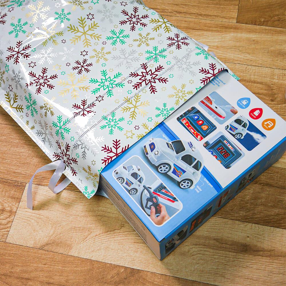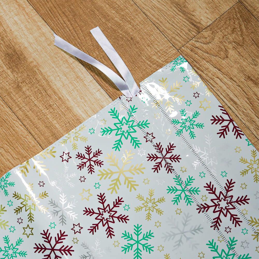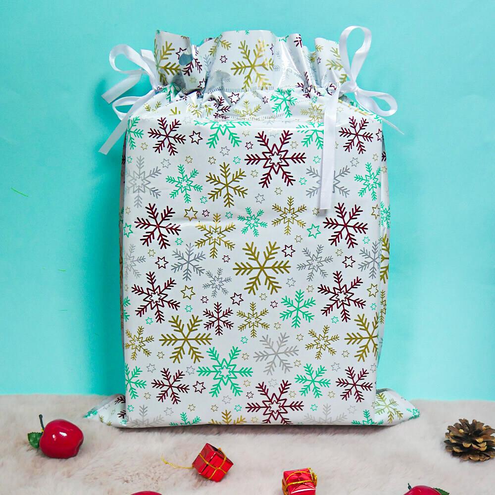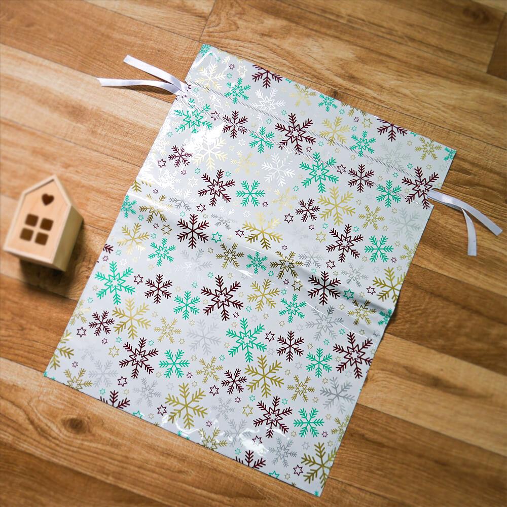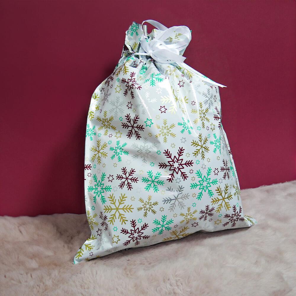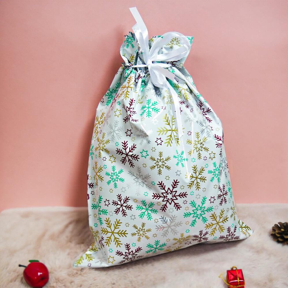 Vánoční dárkový balicí sáček se šňůrkou je praktickým a stylovým řešením pro všechny, kteří chtějí rychle a elegantně zabalit své vánoční dárky. Jsou vyrobeny z odolného a laminovaného materiálu, což zaručuje jejich dlouhou životnost a možnost opakovaného použití.