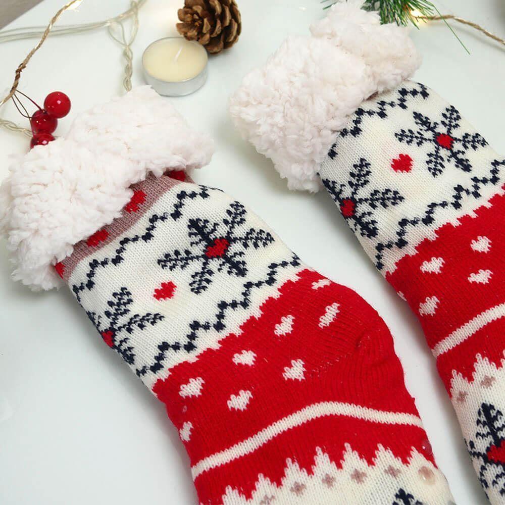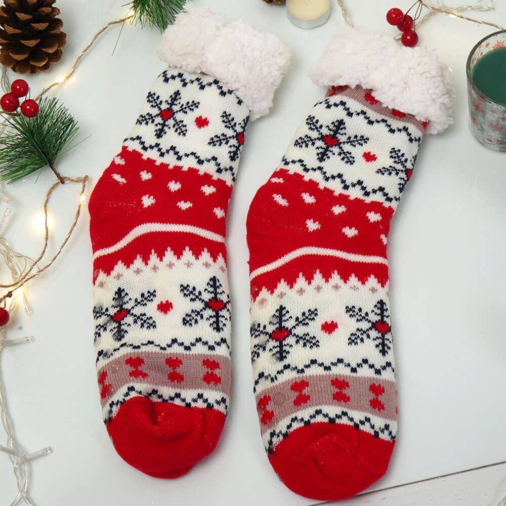 Vánoční hřejivé ponožky s kožíškem - sněhové vločky