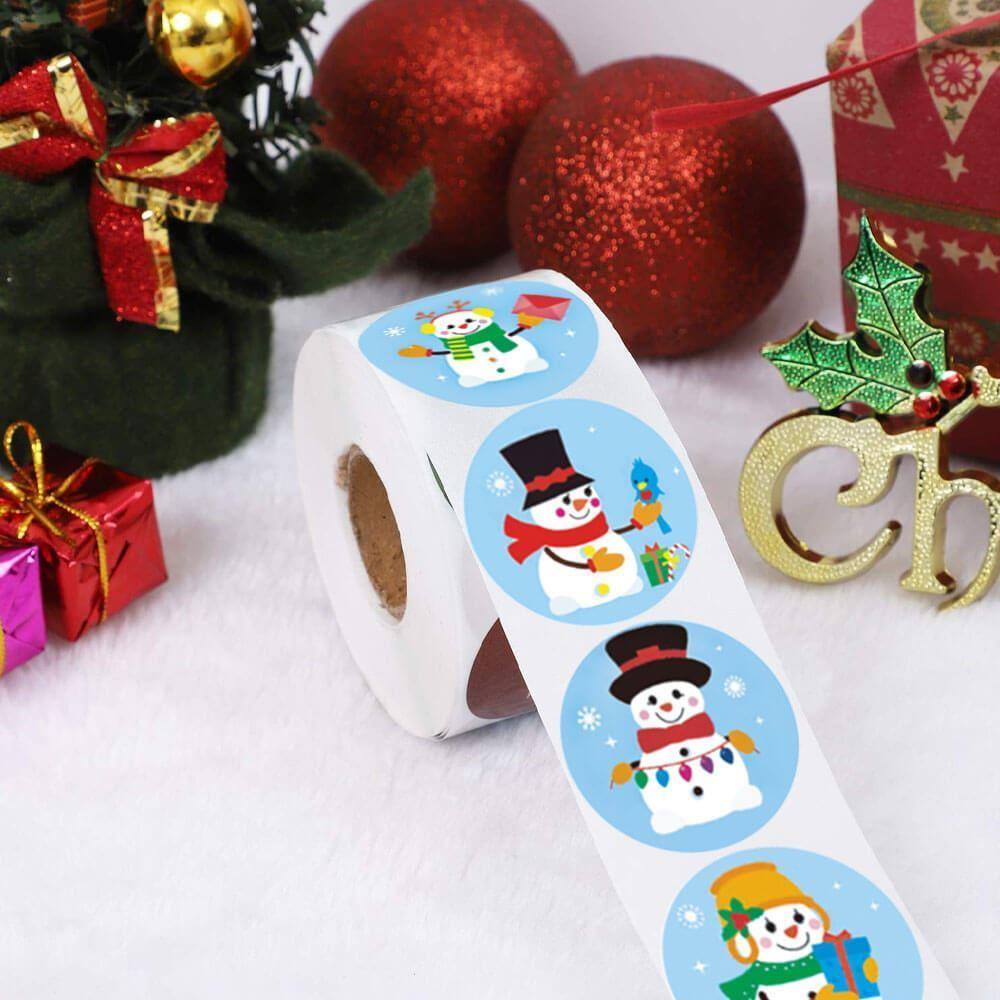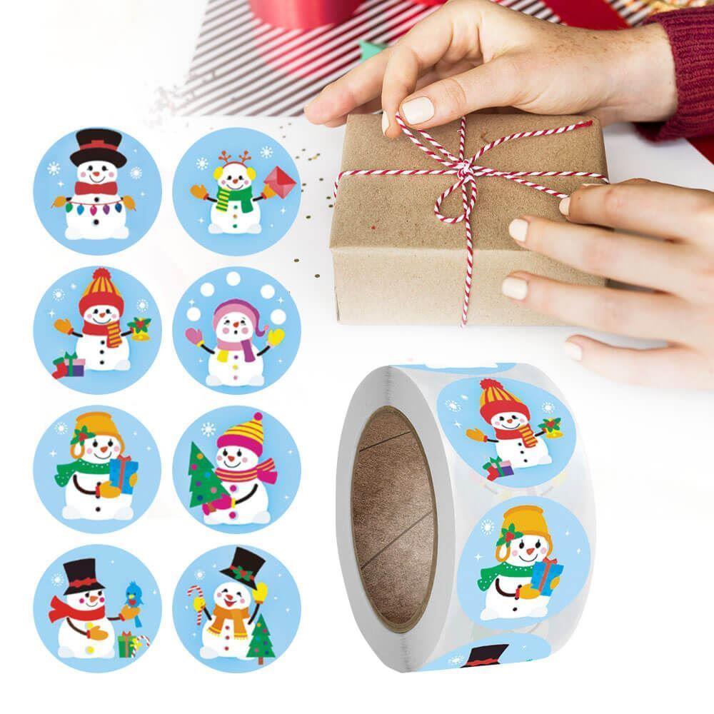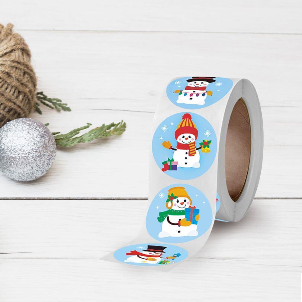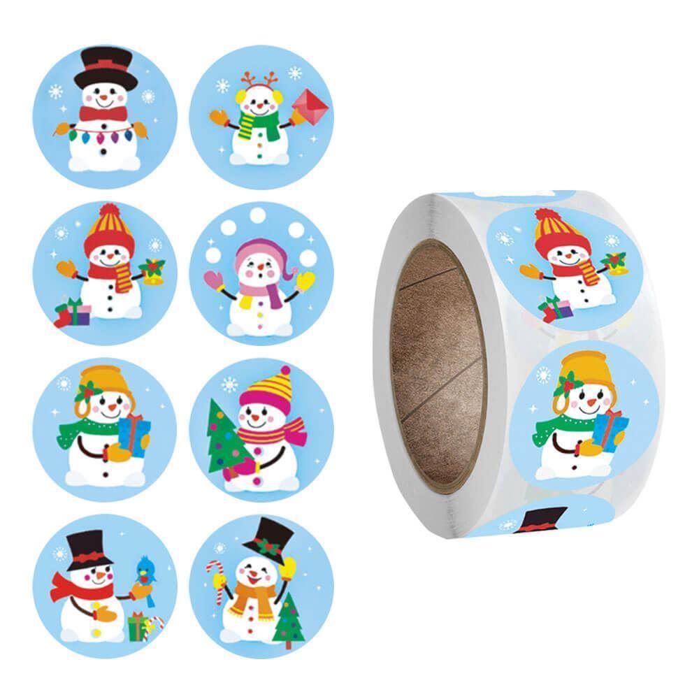 Vánoční samolepky 500 ks - veselí sněhuláci
