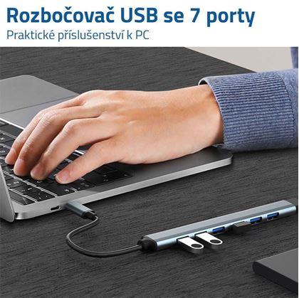 Víceportový adaptér USB 7v1 je ideálním řešením pro každého, kdo potřebuje efektivně propojit více zařízení s jedním notebookem nebo tabletem. Tento adaptér nabízí 7 rychlých portů, díky kterým můžete snadno připojit externí disky, klávesnice, myši, flash disky a další USB zařízení, aniž byste museli neustále měnit připojení. Jeho elegantní a kompaktní design zaručuje, že ho můžete mít vždy u sebe a využít ho kdykoliv potřebujete. Ať už v kanceláři, doma či na cestách.