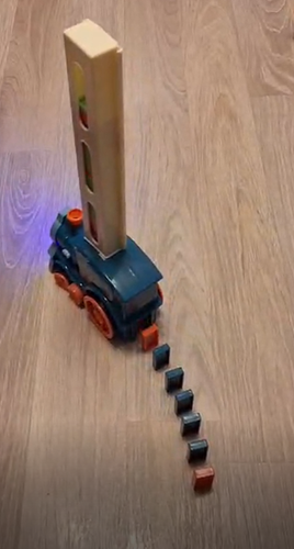 Bourat postavené domino určitě baví nejednoho z nás. No jo, ale kdo ty kostičky má pořád dokola stavět?! O to se ale už starat nemusíte – vláček se postará za vás. Tento vláček je vybavený zásobníkem, který naplníte domino kostičkami. Zásobník nasadíte, vláček nastartujete a je to! Vláček za jízdy také vydává zvukové efekty – cinká a houká.