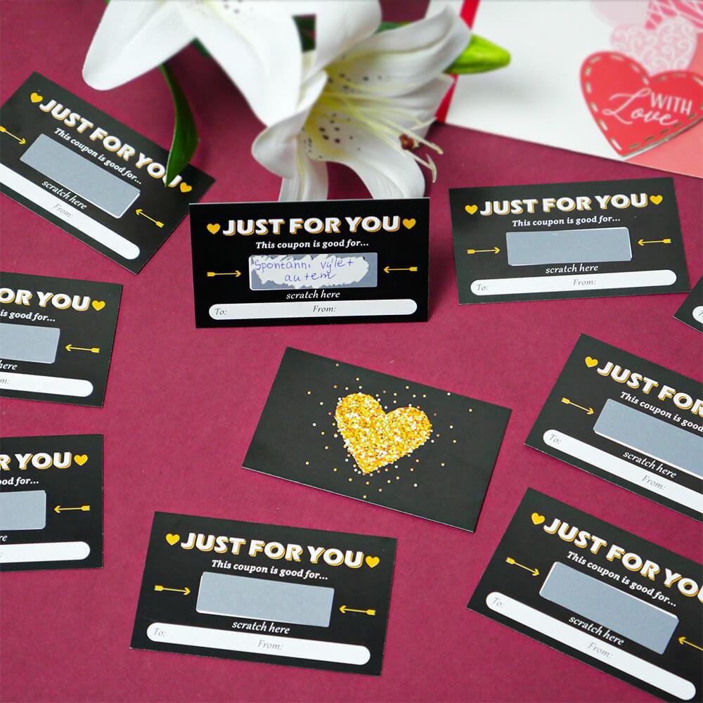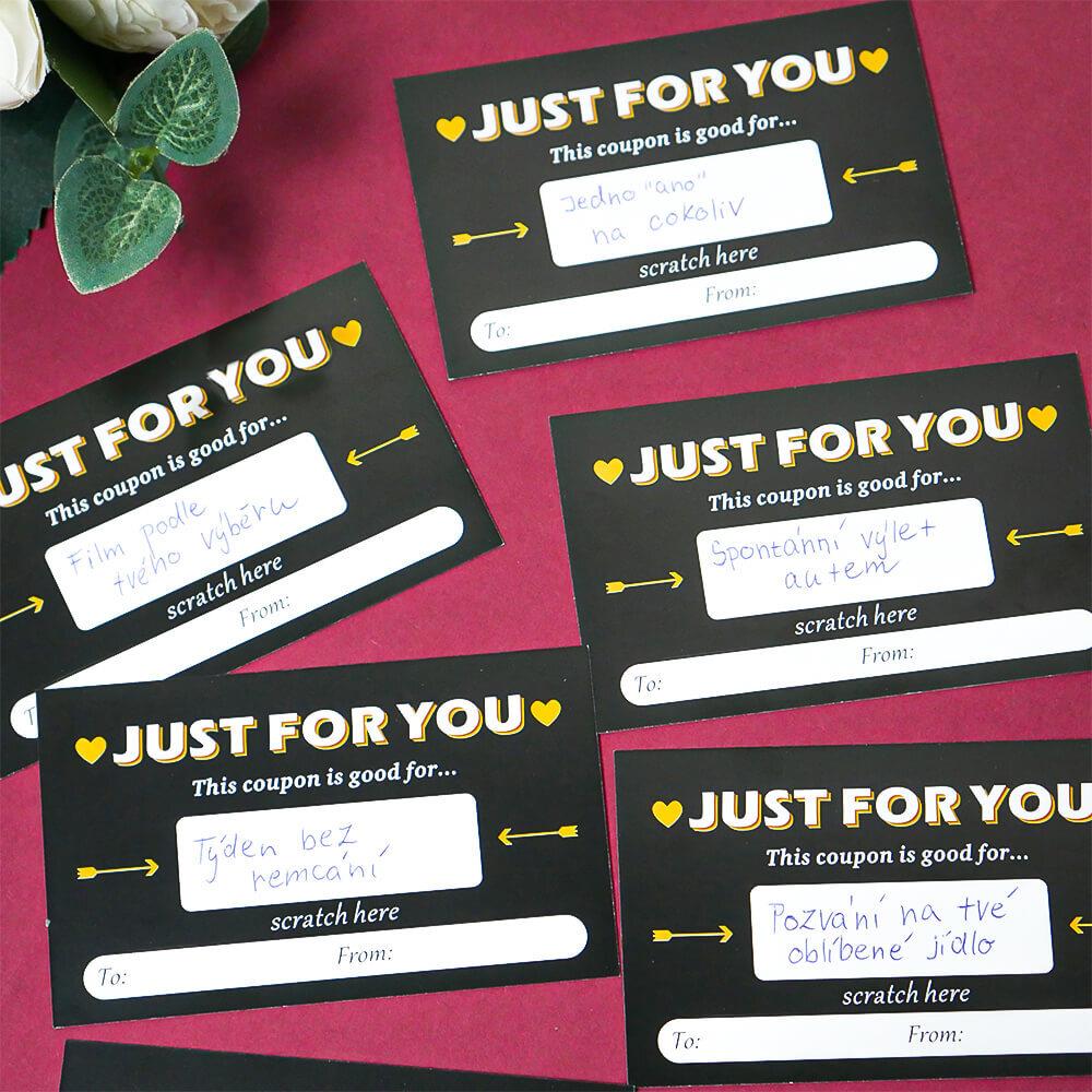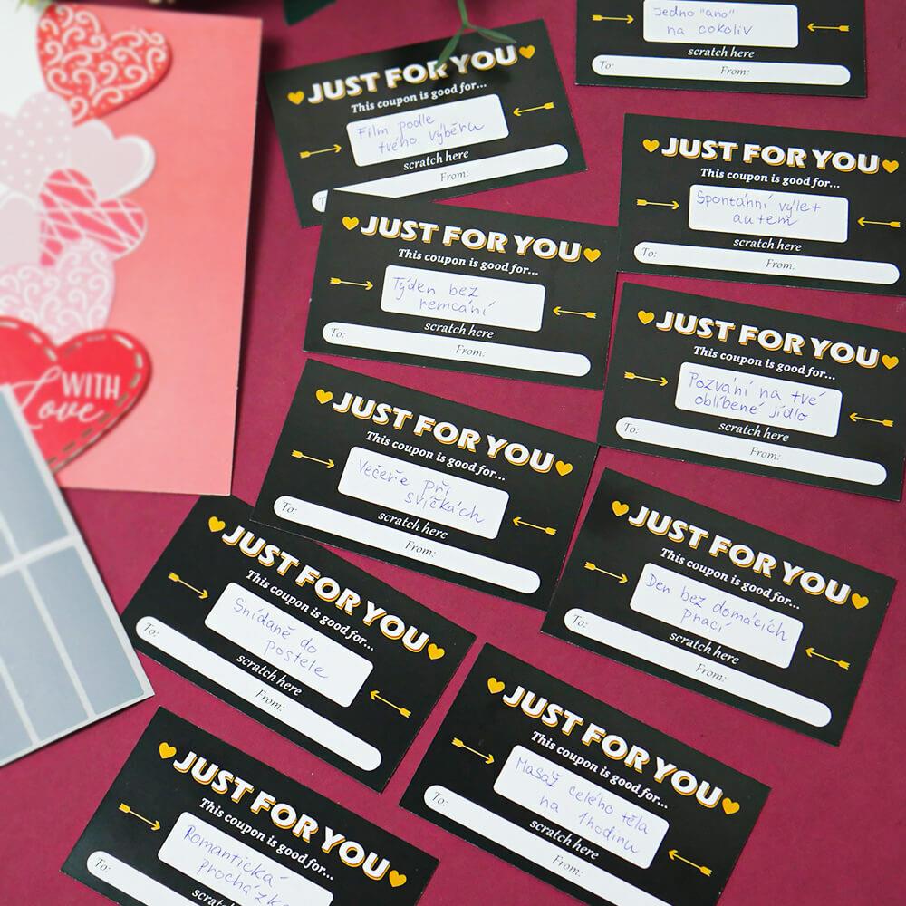 Do každého kuponu můžete napsat originální přání, například masáž, snídani do postele, romantickou procházku nebo společnou dovolenou. Pak jen přelepíte políčko stírací nálepkou a vznikne malé tajemství, které čeká na své odhalení. Díky hravé formě je sdělení mnohem osobnější a srdečnější. Deset losů v jednom balení Vám dává možnost udělat radost více lidem, nebo vytvořit sérii malých překvapení pro jednoho výjimečného člověka. Každý los je originální, protože do něj vkládáte kus sebe. A to je hodnota, kterou žádný koupený dárek nenahradí.