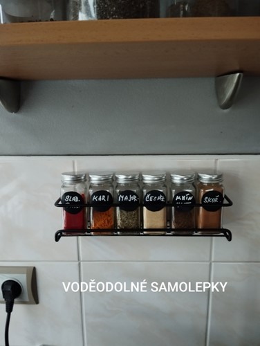 Samolepky mají černý podklad a píše se na ně bílou křídovou fixou, která je součástí balení. Velkou výhodou samolepek je to, že jsou voděodolné.