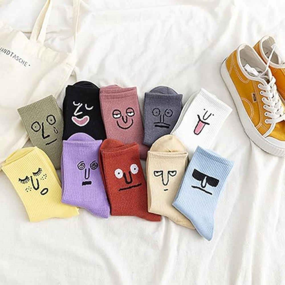 Začněte se oblékat zábavněji s našimi náladovými ponožkami a ukažte světu, jak se dnes cítíte. Ponožky si zachovávají minimalistický design, který tvoří jen podkladová barva a jednoduchý vzor obličeje vyjadřující nějakou emoci. Díky tomuto designovému prvku máte možnost všem ukázat, jakou daný den máte náladu, aniž byste se museli pouštět do konverzace.