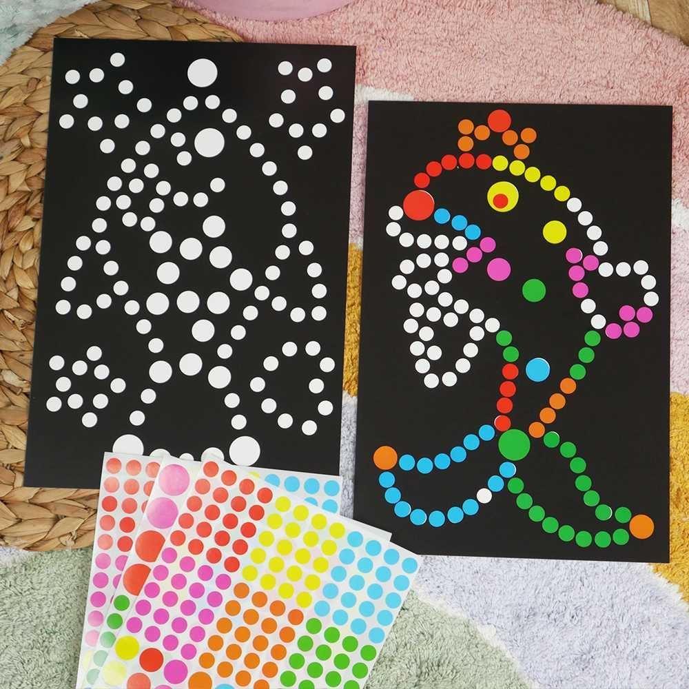 Vykouzlit úsměv na dětské tvářičce a ještě něčemu naučit? Ano, i to dovede toto kouzelné zábavné lepení, se kterým si vaše děti užijí spoustu zábavy! Nejen kreativní děti ocení, když se mohou věnovat aktivitám, které je baví, a hlavně při nich pod rukama vzniká něco, čím se následně mohou pochlubit. S pomocí barevných samolepicích puntíků a předlohy děti vykouzlí krásné motivy. Čím pečlivější budou, tím hezčí bude i obrázek, a tak je třeba si dát záležet.