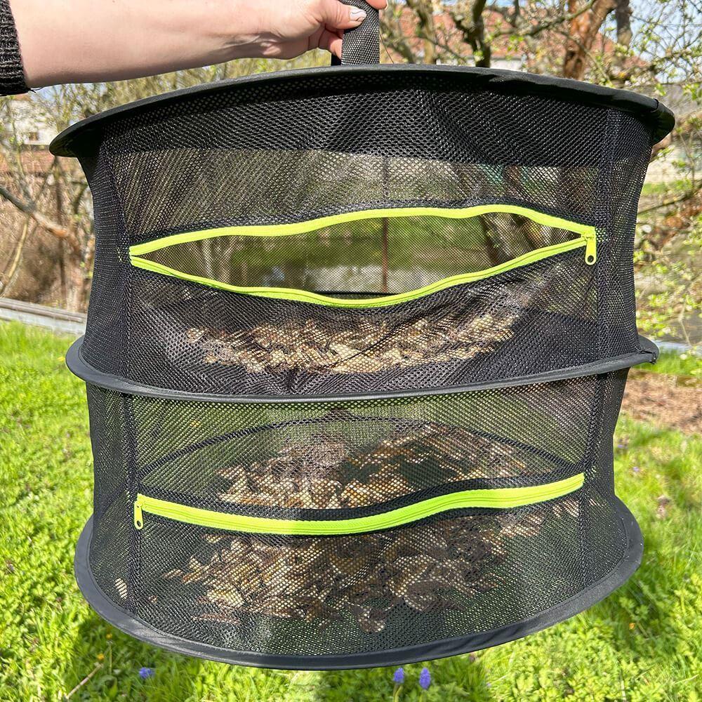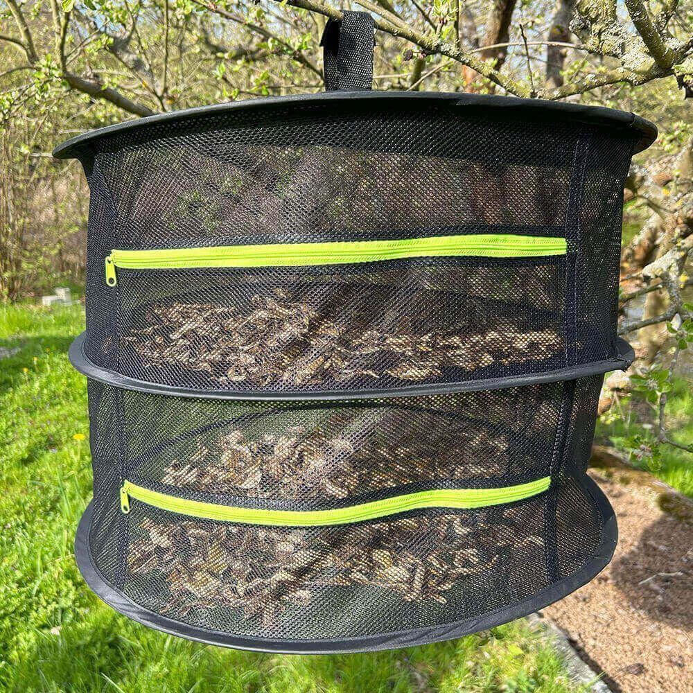 Dvě prostorná patra, která jednoduše zapnete zipem, zaručí nejen dostatek místa pro vaši sklizeň, ale i bezpečí před větrem nebo zvědavým hmyzem. Staňte se profíkem v sušení a udělejte si zásoby – než se zima zeptá, co jste dělali v létě, budete mít plnou spíž!