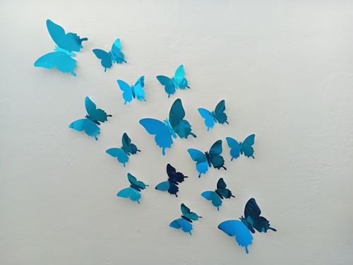 Pokud máte rádi jedinečné a originální bytové dekorace, určitě se vám budou líbit tito zrcadloví motýli. Záleží jen na vás, zda motýly nalepíte do obýváku na zeď, do ložnice na skříň, nebo třeba na lednici. Zapojte vaši fantasii a nalepte motýly tam, kde se budou nejkrásněji vyjímat. Motýli budou nejlépe držet na rovném, hladkém a očištěném povrchu.